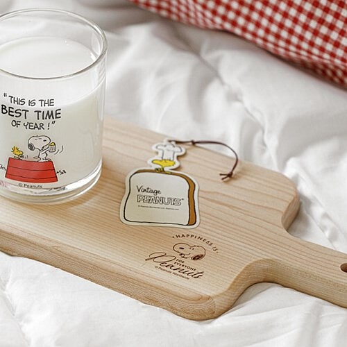 簡約低調的木紋質感,角落裡還藏著一隻可愛的snoopy。