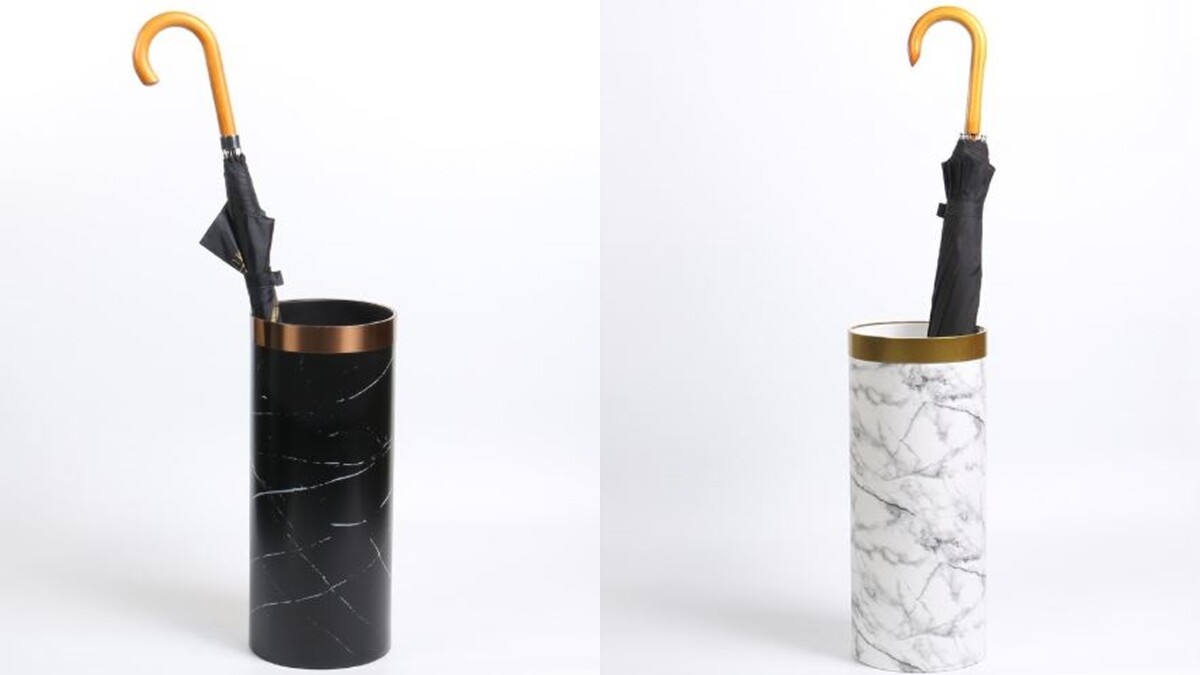 一進家門,亂放沾滿雨水的雨傘,會使家裡潮濕不堪!注重居家品質的你,玄關必備這個大理石紋雨傘桶,簡約質感,上方還有一圈金屬色設計,為氣質的大理石紋再添奢華貴氣,也可以避免地板溼答答。同樣有黑白兩色能選擇,售價2020元。