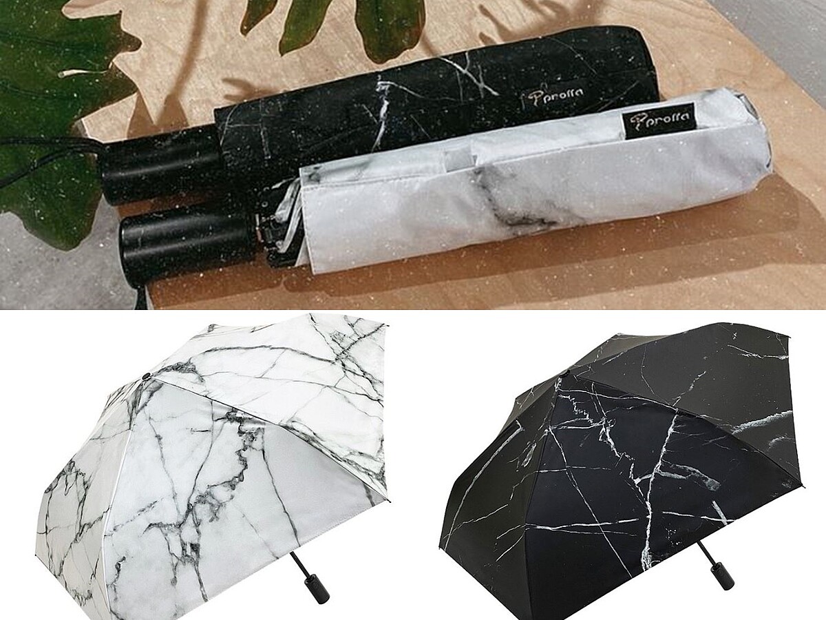 雖然下著傾盆大雨,但還是要出門上班、上課,最重要的東西莫過於雨傘!在黑漆漆的天空下,拿著一把大理石紋雨傘,絕對能有點亮心情的正面作用。這把有自動收開的方便設計,也有防曬遮光效果可作為陽傘使用。有黑白兩色能選擇,售價1200元。
