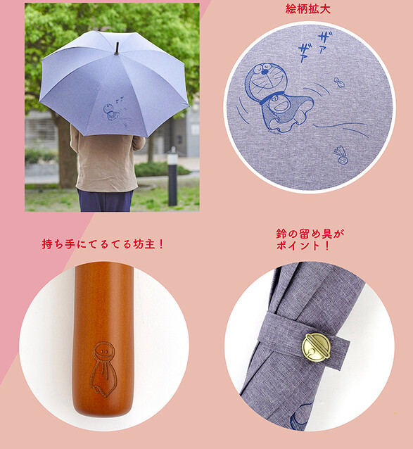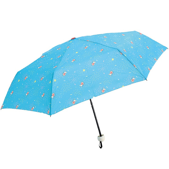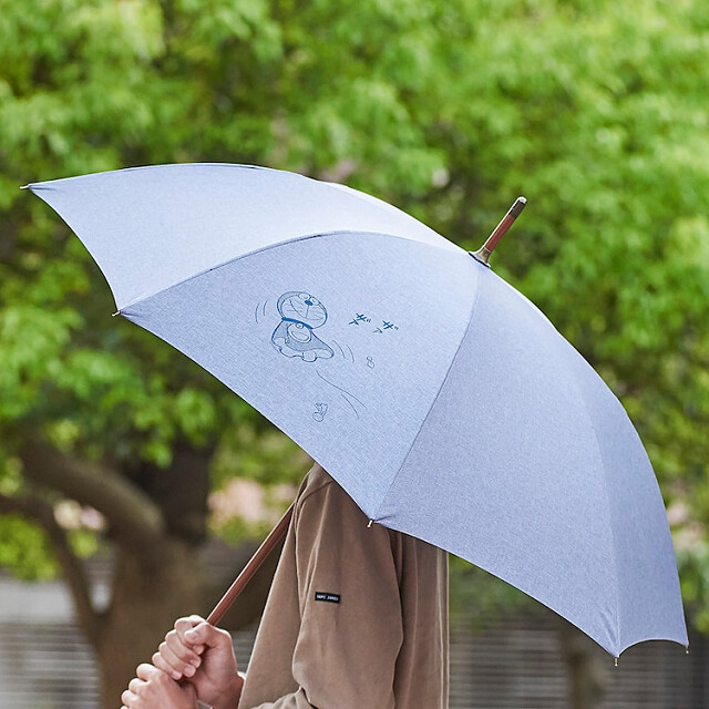以哆啦A夢的代表水藍色為底色,搭配哆啦A夢滿版圖案,最大的亮點是傘柄的握把,彷彿像是要拿出道具超級可愛!