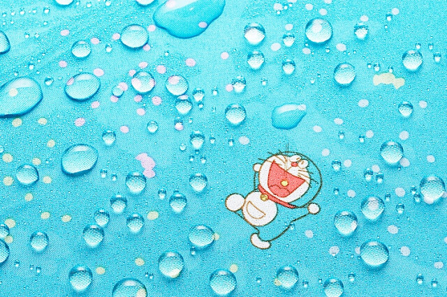藍色的傘面,搭配哆啦A夢晴天娃娃替大家遮風避雨,祈禱快點雨過天晴吧!