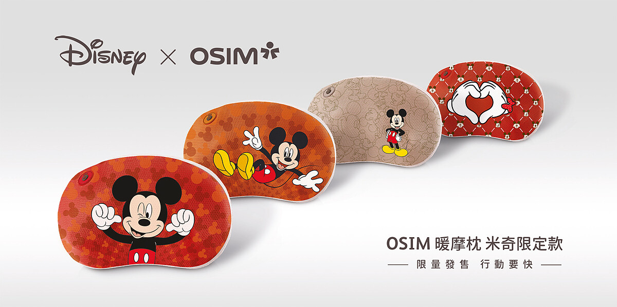 OSIM暖摩枕米奇限定款每款式全台限量700台,即日起於OSIM實體專櫃、OSIM官網及MOMO購物網開賣,售價NTD2,980元(原價NTD3,680元)。