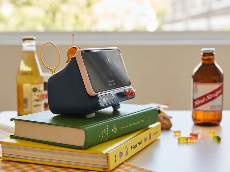 手機一放上去立刻變成一台迷你復古電視機,追劇的同時看起來就像是在看小電視,真的超級可愛!
