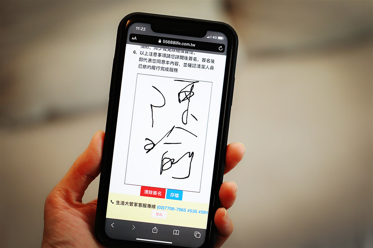 清潔完畢後,師傅會請客戶在手機APP簽名,確認作業完成驗收!