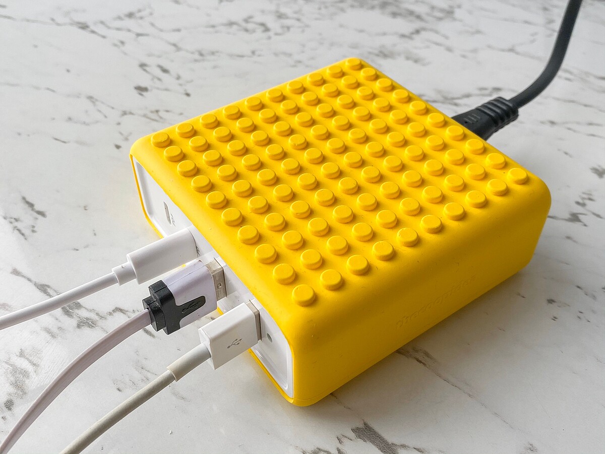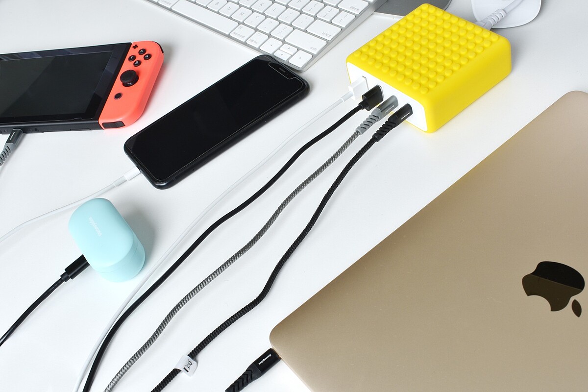 現代人3C產品不離身,需要帶許多不同的插頭,終於擺脫線路亂糟糟的窘境,積木充電器配備有兩個USB-C及兩個USB-A埠,從耳機、手機、筆電、SWITCH通通都能充!