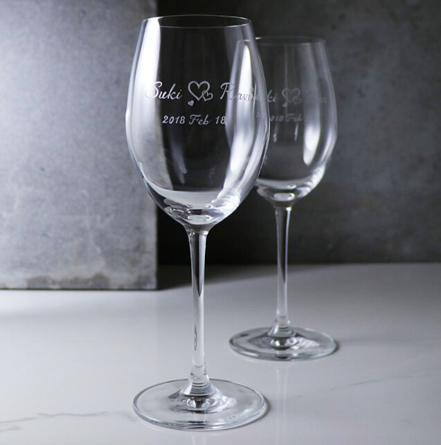 除了造型的酒杯外,喜歡簡約的人也可以選擇這款水晶名字對杯,杯身圓潤採用曼谷Bangkok Bliss系列,在每一次節日兩人都可以使用這款對杯慶祝,真的超浪漫!