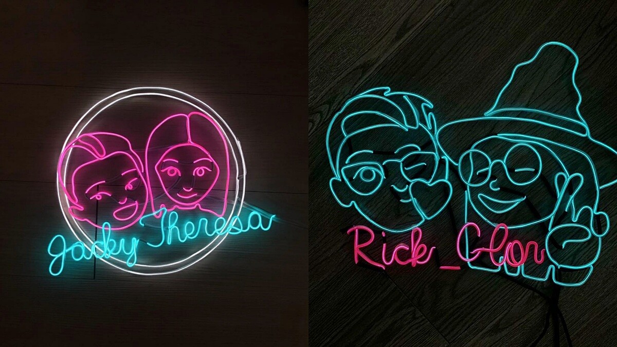 除了霓虹燈字牌,你也可以打造一個專屬與另一半的霓虹圖案燈,讓你們的圖像在黑夜中也能閃閃發光,現在就來訂製一個既新潮又具紀念價值的七夕禮物吧!