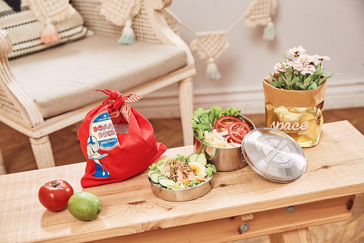 超吸睛唐老鴨經典便當盒,便當盒採304不鏽鋼材質,堅固耐用,輕巧好攜帶,適用於蒸鍋、電鍋加熱。附上獨特包巾設計,從現在起,吃飯也能成為一種時尚!