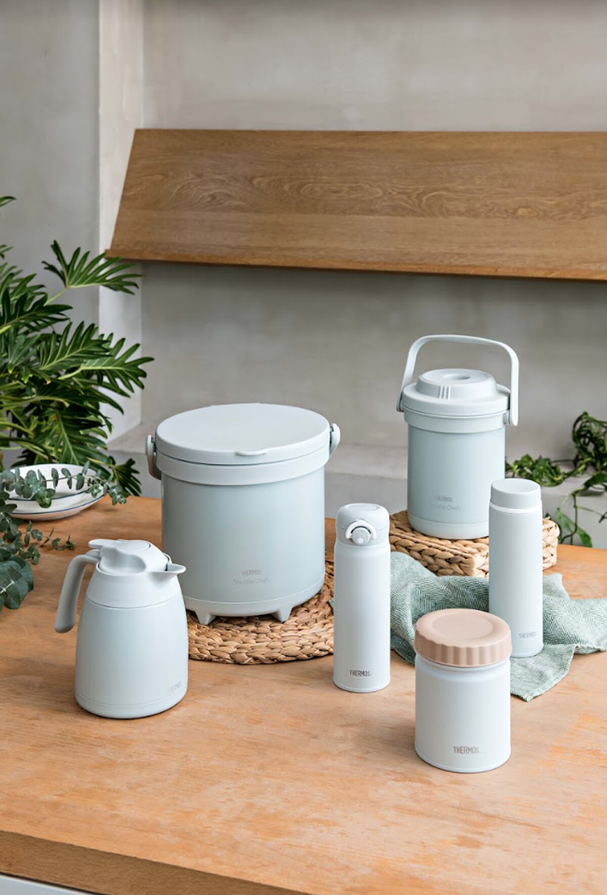 6款迷霧綠商品包括保溫杯、保溫瓶、保溫壺、燜燒罐、燜燒鍋及燜燒提鍋,朦朧迷霧灰綠色調,又帶點極簡的北歐愜意氛圍,讓居家環境也能透過顏色來妝點生活。