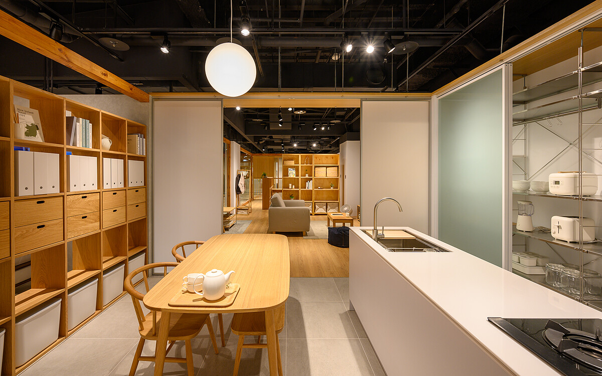MUJI無印良品全新的「金典概念店」,占地486坪、座落金典綠園道商場2樓,這間店強化體驗服務與在地化商品。最主打的是規劃全台唯一33坪的「無印良品的家」!由MUJI RENOVATION空間改造企劃團隊設計,強調不受系統收納櫃的擺設,可以看到家庭成員生活習慣與動線,也能自行工動隔間位置。另外還加入門市無販售、日本獨家進口的五金道具與建材,提供民眾更多居家布置靈感。