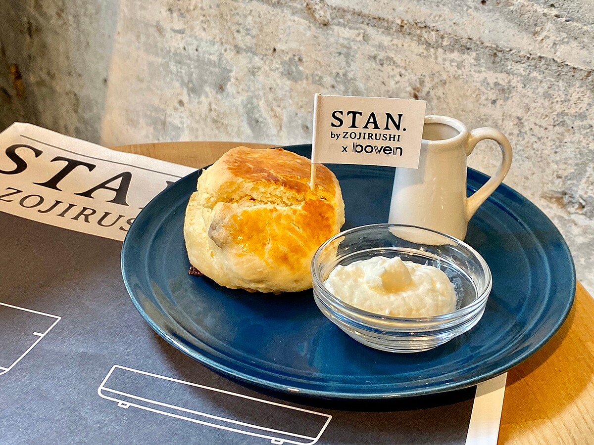 除了飯糰與鹹派外,還有英式司康可以選擇,可以依照個人喜好夾入鮮奶油、淋上楓糖漿或沾果醬,再來一杯象印限定黑糖拿鐵剛剛好!