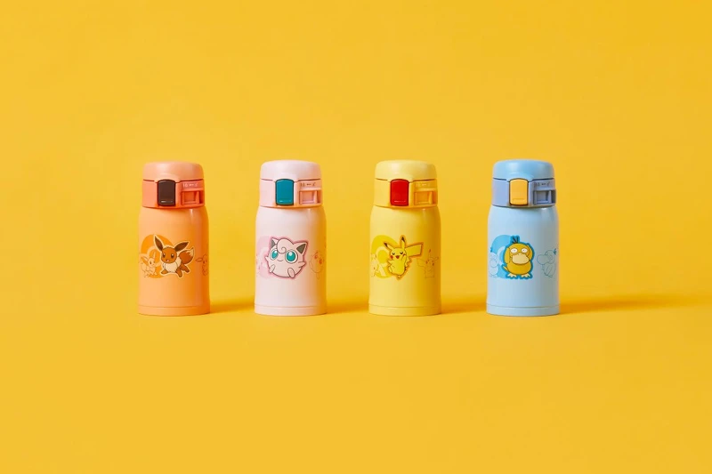 限量禮盒中內含一組四入的象印One Touch迷你保溫杯,瓶身設計分別為胖丁、伊布、皮卡丘、以及可達鴨,以療癒又可愛的姿態環繞瓶身,依照寶可夢各自的兩種代表色作為瓶身與杯蓋按鈕撞色搭配!