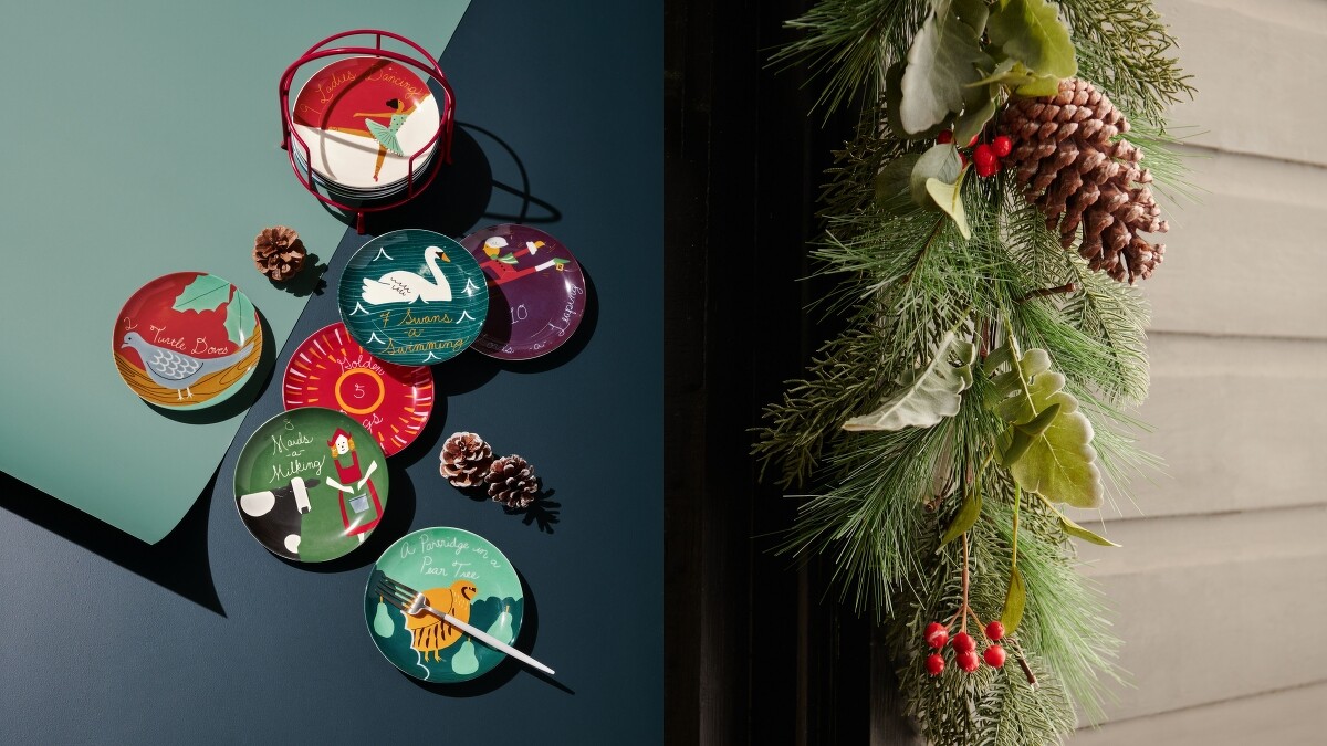 一提及聖誕節,紅跟綠的繽紛色調自然浮出腦海,也帶出熱鬧節慶氣息。為了避免整體過於花俏,可以在小細節處點綴即可!從盤架、馬克杯、料理碗到門飾,在紅綠底色上加入海軍藍、格紋與童趣插畫,時刻感受歡樂、傳統與現代兼具的摩登風格。