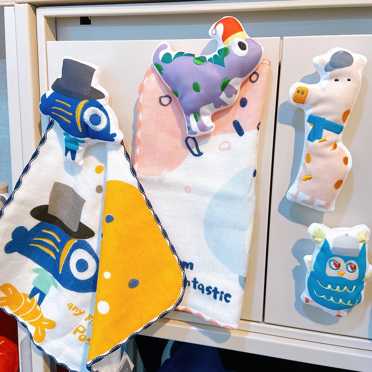 造型磁鐵-魚頭先生/龍哥/淇淋鹿/喵頭鷹/小黃,199元/件;童趣小手巾三入組,429元/組