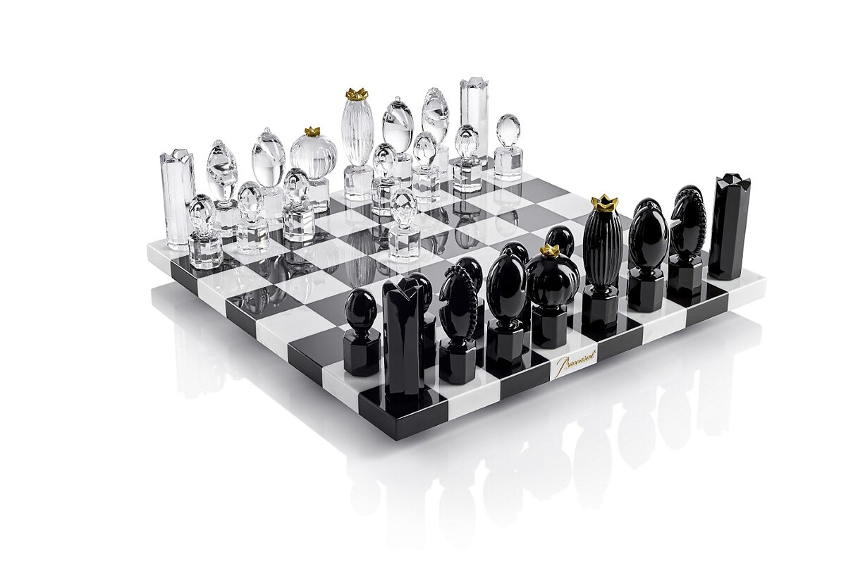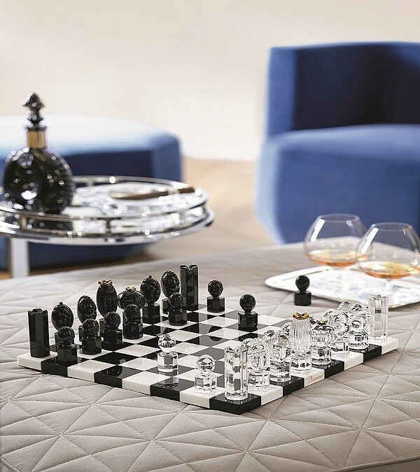 首先是JEUX遊戲系列的「水晶大理石西洋棋盤組」,Baccarat攜手馬塞爾萬德斯Marcel Wanders將桌遊躍上貴族名媛的時尚玩物,透明水晶國王棋下面刻有鍍金編號和Baccarat logo,國王棋和王后棋的皇冠皆有鑲金,王后棋更可當做超小型花瓶使用。