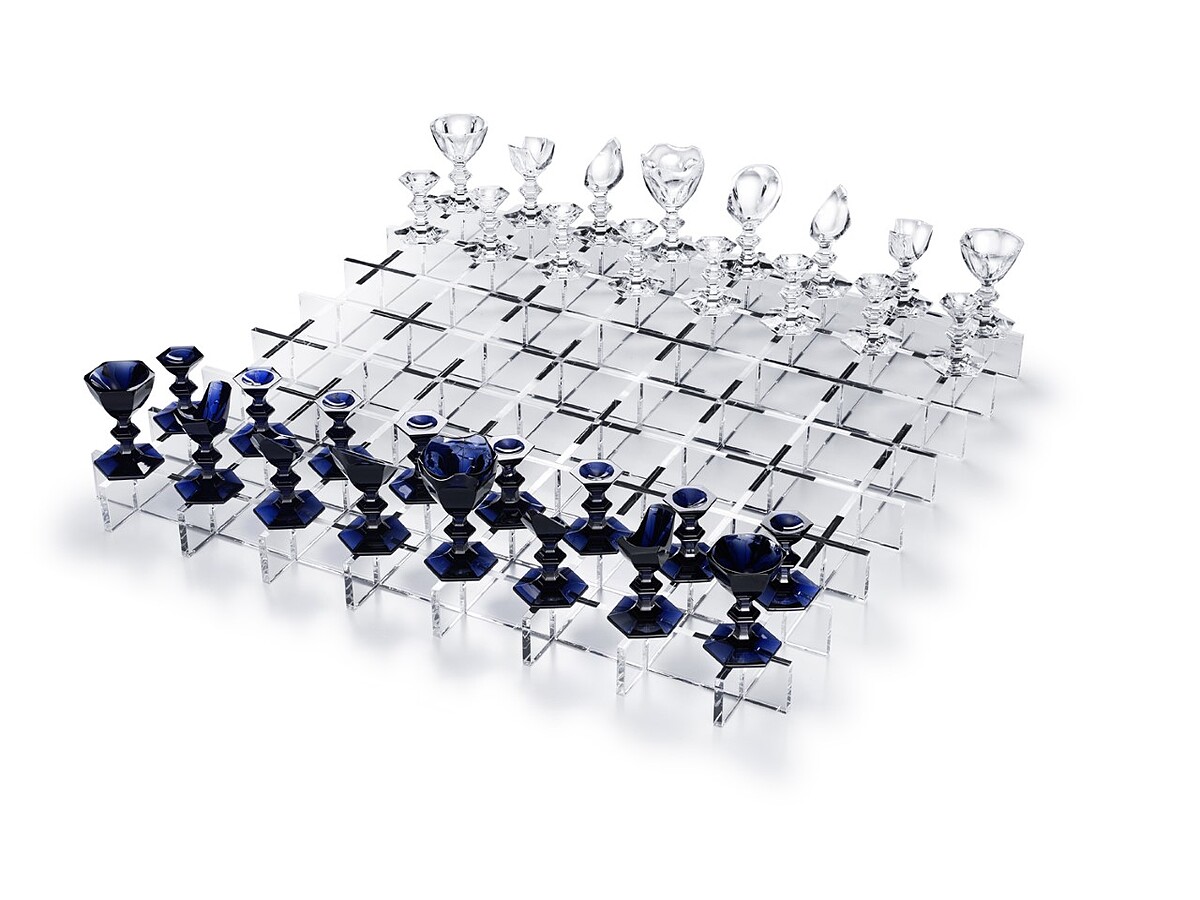 色彩上則是沉靜的午夜藍,富有現代感的大型壓克力棋盤底座印有午夜藍十字及一個BACCARAT品牌代表的紅色十字,創造前衛效果,全球帶編號限量50件,定價 1,716,900。