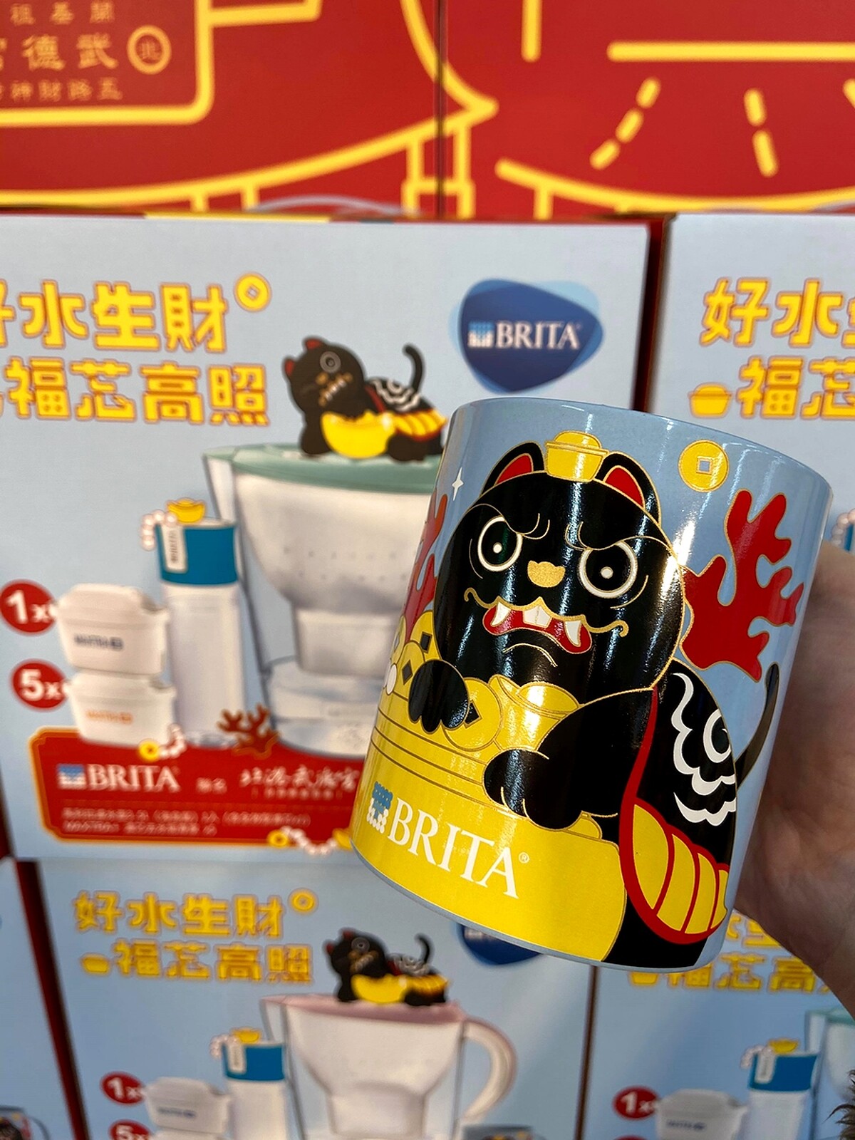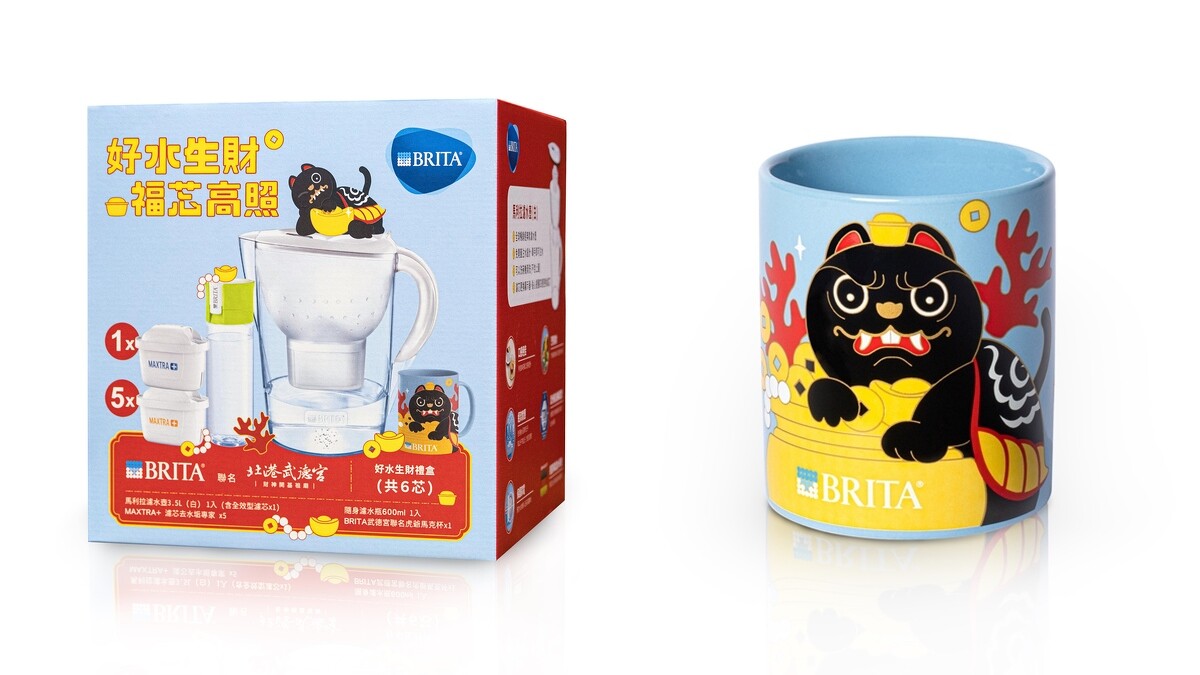 在台灣有著超高濾水壺市佔率的德國BRITA,在邁入第四年的過年禮盒特別實踐「在地化」,找來雲林北港武德宮合作,由武德宮旗下「買樂文創團隊」操刀設計,將傳統信仰傳遞到馬克杯身設計,讓每一次喝水都能融入信仰、感受財神爺的祈福庇佑。