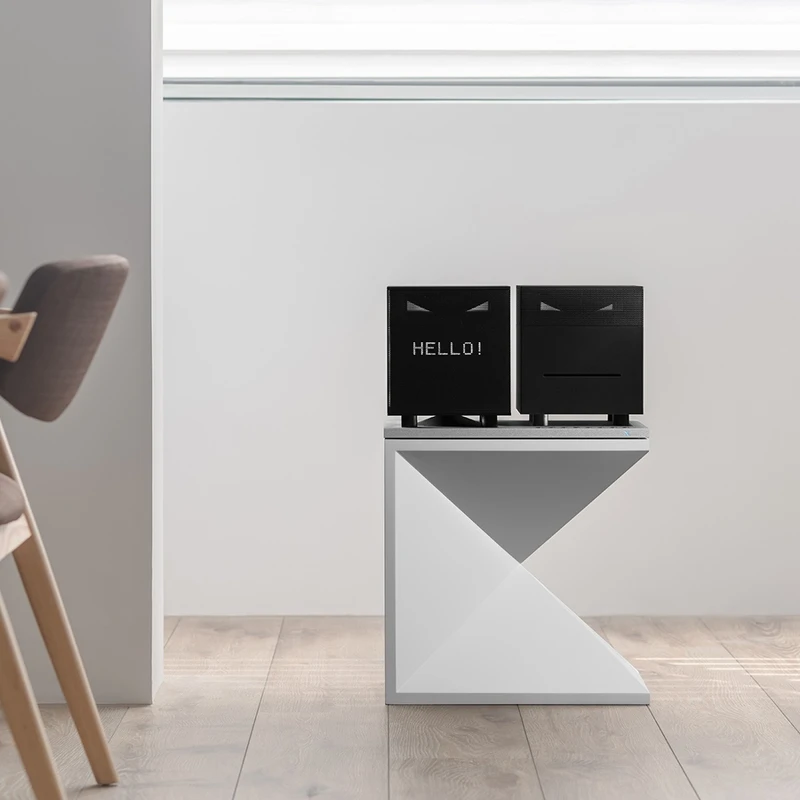 從外觀來看,Aerix Duet以兩個發聲箱體與下方金屬底板形成「一體式音響」,以點、線、面等設計基礎塑造極簡工業風格。低調卻不容忽視的耐看幾何結構,能和諧融入各式居家環境,並有LED顯示螢幕能顯示時間資訊、打招呼等。