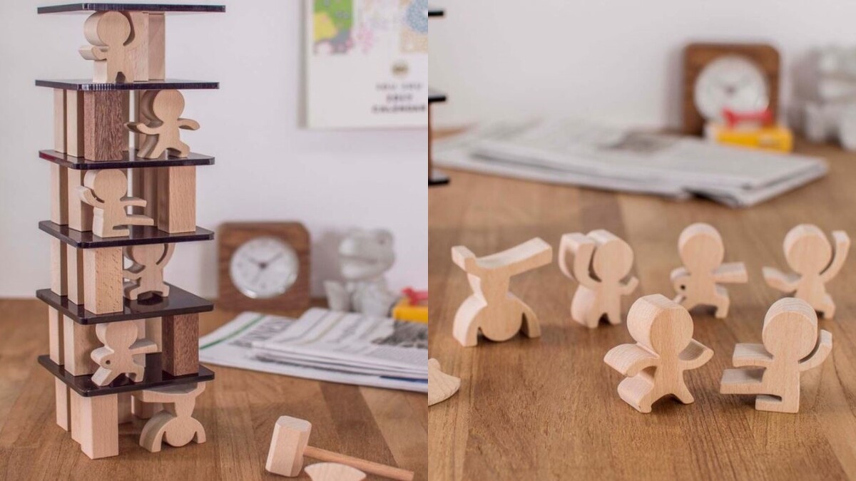 同樣是超常見的疊疊樂遊戲,今年就來場「升級版」!由木匠兄妹品牌全手工木製而成的「武林高手疊疊樂」,在疊上積木、木製人偶後,還能用大槌、大斧等武器敲打,以增加遊戲困難度。另外還有進階版「頂天立地」挑戰,讓氣氛嗨到最高點。