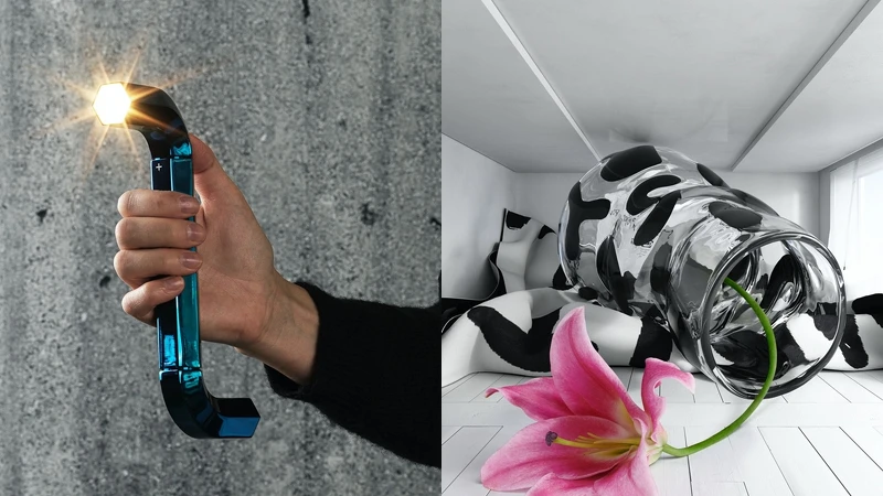 而擅長把玩光影與材質的新銳荷蘭設計師Sabine Marcelis,以「割畫布」為靈感設計推出兩款壁面裝飾燈,能切換5種顏色,能輕鬆為居家環境改變空間氛圍。日本3D設計團隊Gelchop操刀的六角扳手形桌燈及手電筒,將家中常見工具化身藝術品,白色、銀色、藍色外型下更有金屬光澤,顛覆你對扳手的成見。