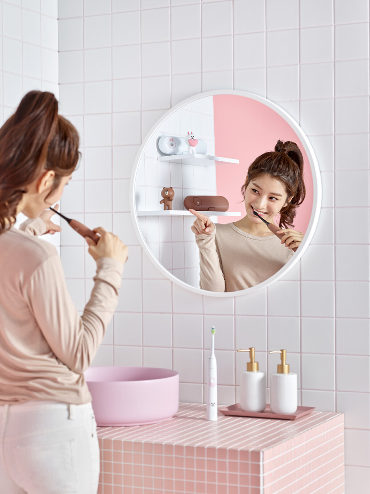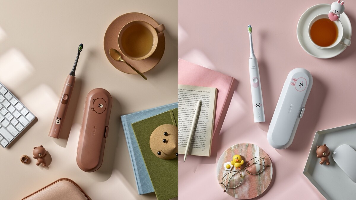 這款亞洲限定的「飛利浦 LINE FRIENDS合作款音波震動牙刷」,光從外型就令人少女心狂噴!保留原先Sonicare電動牙刷外型設計,並換上熊大、兔兔分別代表色的棕色與白色,握把尾端也印上兩位人氣主角的表情,顛覆以往電動牙刷給人的科技距離感,讓枯燥的刷牙時刻注入療癒感。