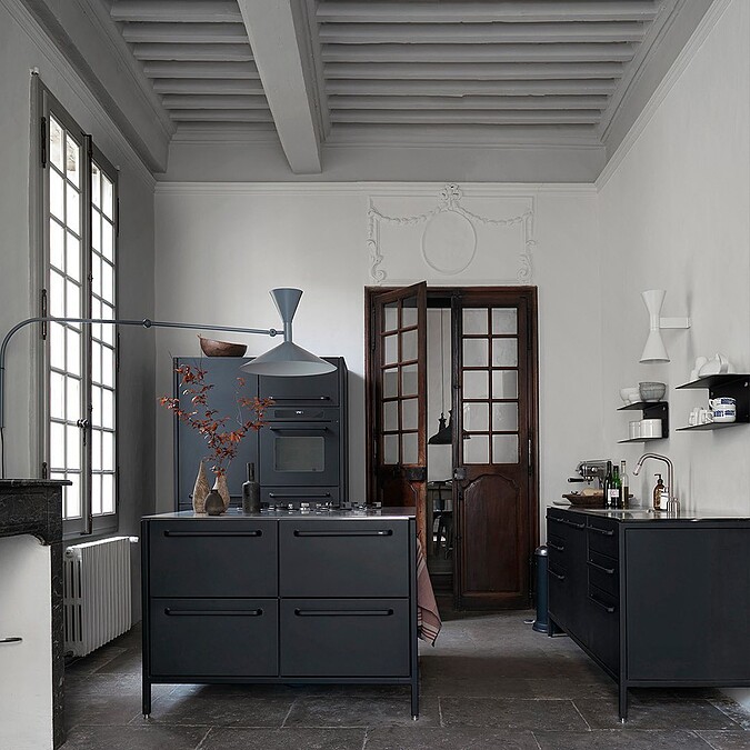 但,做廚具的開端其實很瘋狂,原來專心做了70多年一種產品後,為了搭配這唯一的產品—垃圾桶,VIPP 才開始設計一套廚具,現任 VIPP 設計總監 Morten Bo Jensen 依舊不考慮主流市場的風格,並延續品牌創辦人 Holger Nielsen 的想法,將 Vipp風格的鋼鐵金屬設計品帶入廚具,也不作多餘的設計與功能,只專注於「便利使用」的細節上,例如:平整的檯面、滑順的抽屜軌道、自由搭配組合的櫃體,沿襲一貫優質的觸感以及耐用材質,這樣廚房便能夠長久使用,可以說無論是功能與外觀VIPP廚具都經得起時間的考驗!