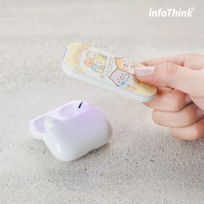 透過鋰電池充電式隨時隨地可完成消毒殺菌,此外,還有超可愛的角落小夥伴造型,放在包包裡超便利,任何隨身物品都能夠輕鬆消毒啦!
