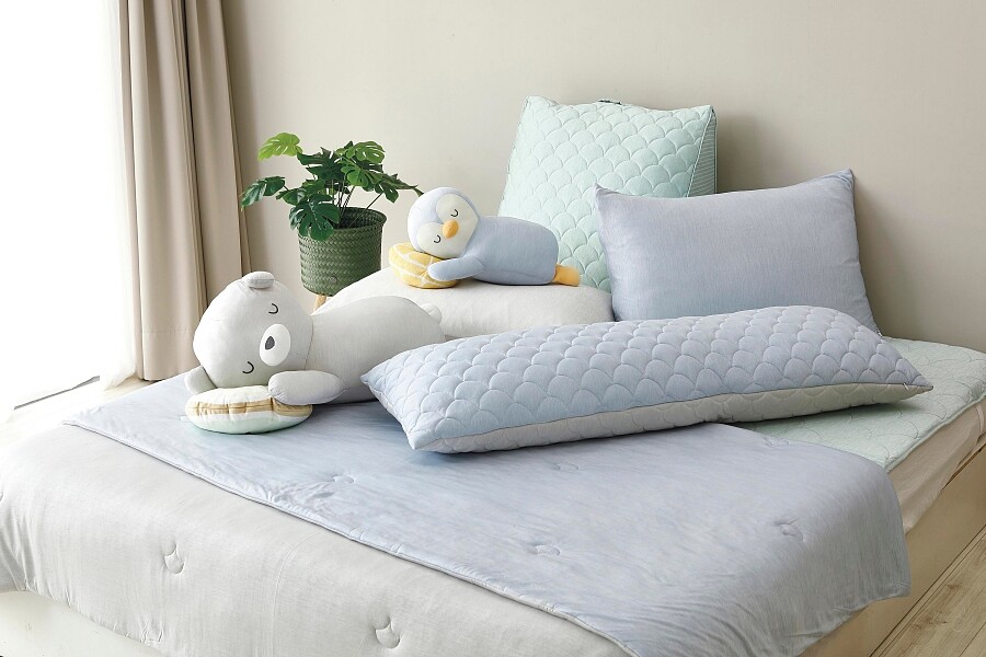 為了讓居家防疫的人們能徹底享受涼感,一共推出多達12種新品,包含涼感床包枕套組、涼感毯、涼感保潔墊、涼感記憶枕、涼感造型抱枕、涼感長抱枕、涼感三角靠墊、涼感記憶美臀墊、涼感記憶腰靠墊、涼感沙發墊、涼感記憶頸枕與涼感室內拖鞋,特價最低299元起,不論在家中各處都好清涼。