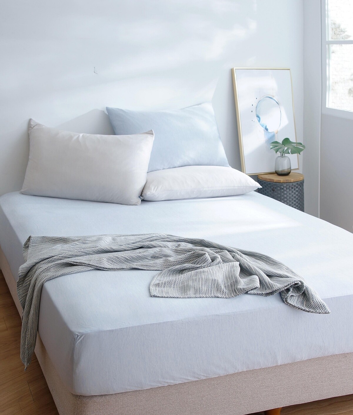 採用創新紡織科技的「snow touch冰紗系列」,揉合比熱大特性的天然玉石元素、從木漿纖維中提煉出具有柔滑透氣的縲縈紗線,交織成兼具冰涼滑順、親膚透氣的涼感紗面料,可以降溫2℃體感,涼感續航力也較以往系列更卓越。
