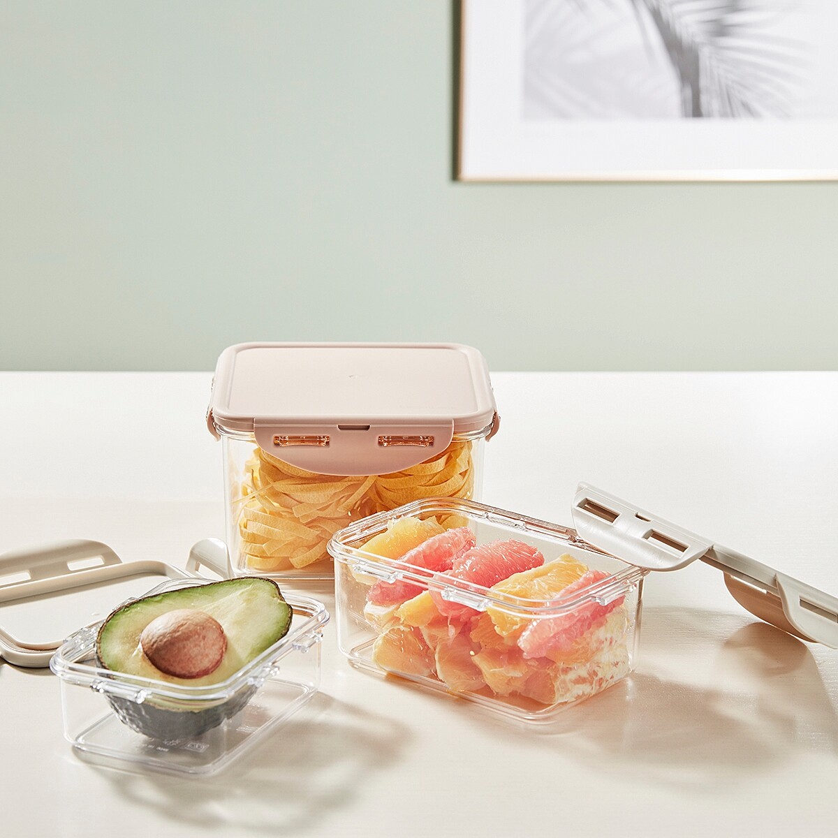 上蓋採用美國新科技Tritan(改質PCT)製成,不含雙酚A與環境賀爾蒙,並依照人體工學四面環扣設計,環扣內凹弧度設計,手指可輕鬆包覆與施力,使用更方便省力,上蓋及盒身皆可冷凍,保鮮不費力,上蓋防滑凹槽設計能輕鬆堆疊收納不易滑落,兼具美感與實用性,打造整齊劃一的收納美學。