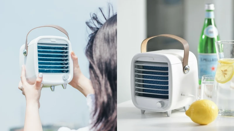 極度怕熱的人請選這一款!利用內置製冷冰盒、能沾濕添加水氣的抗菌濕簾及涼感風扇等三層結構,打造如「行動冷氣」般的清涼感受。可以使用行動電源供電,搭配好握持手把可以方便攜帶出門。另有可調式扇葉、LED氛圍燈等設計,走到哪都能快速降溫。