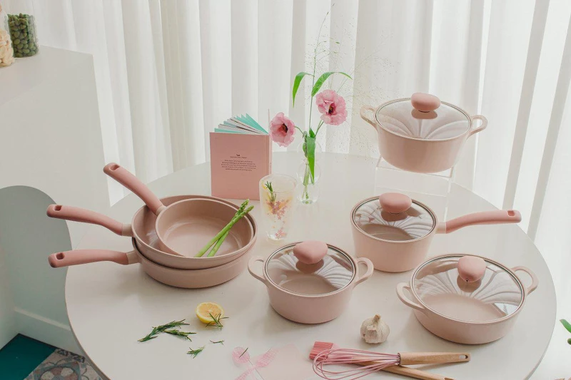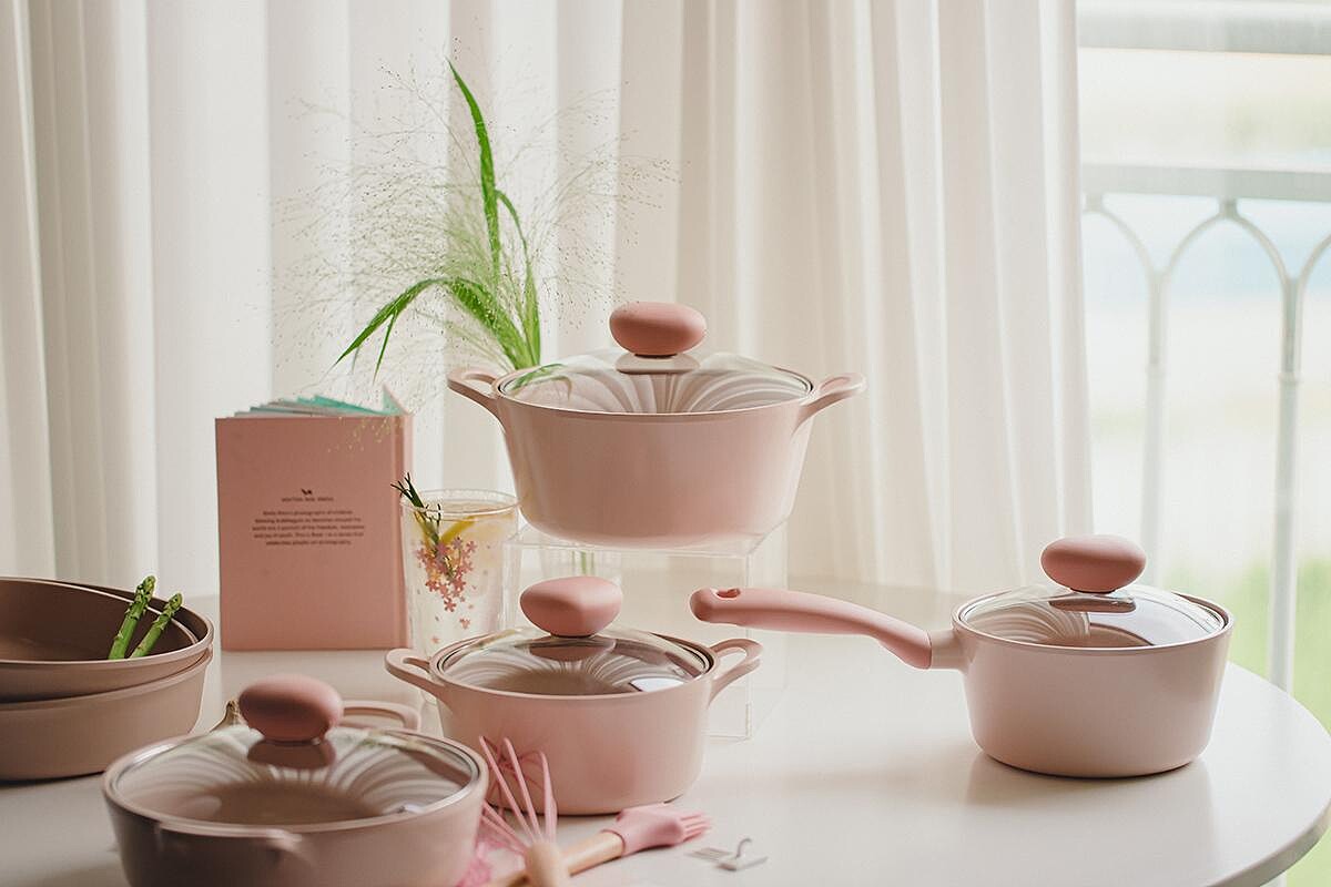 宅在家大家是否都在家裡精進廚藝呢?有不少人選擇自煮料理,不只更加健康而且花費也會比外送費用便宜許多!下廚當然少不了一個好的鍋具組,來自韓國人氣品牌Neoflam推出全新「蜜桃雪酪粉」系列鍋具啦!
