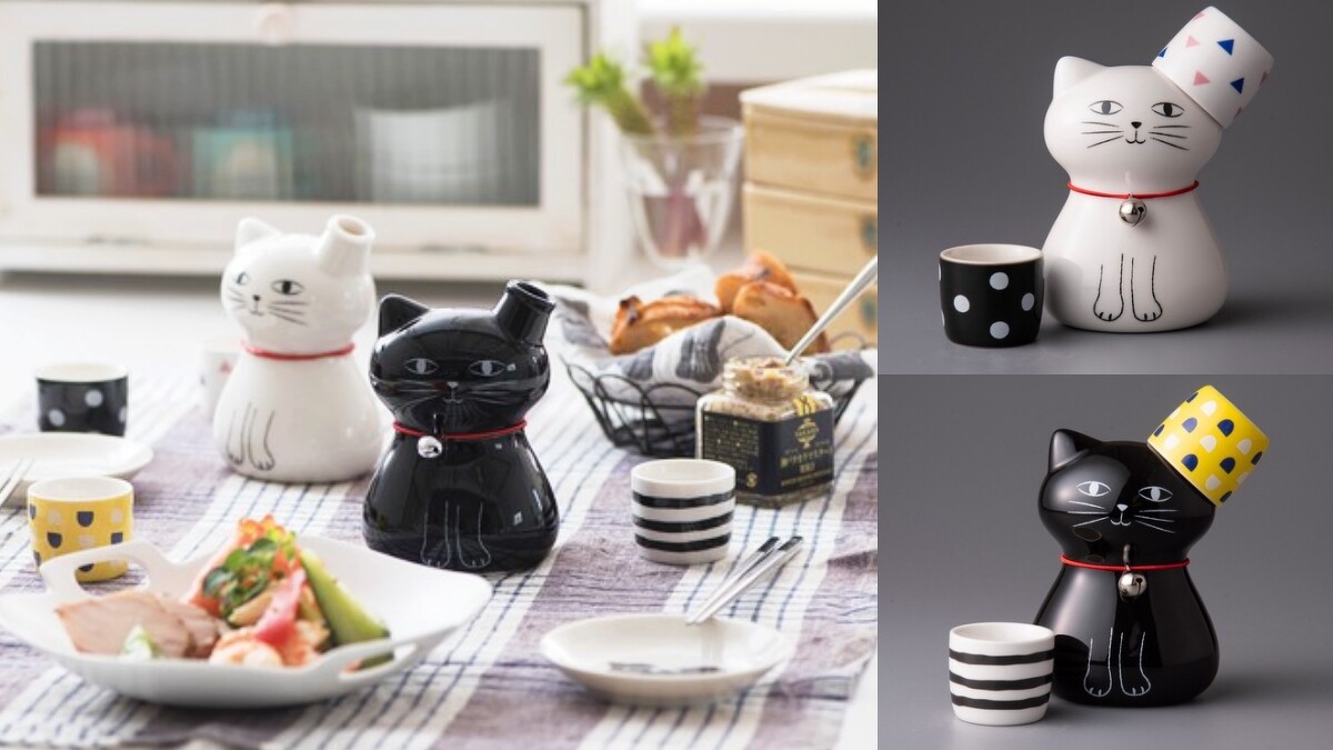 貓奴必收!同樣由小倉陶器推出的貓咪酒壺+豬口杯40ml,有黑貓及白貓兩款設計,立體的貓咪瓶身好似乖巧地陪伴在身旁,左耳更可以用來掛置酒杯,這樣的微醺時光會不會太愜意!