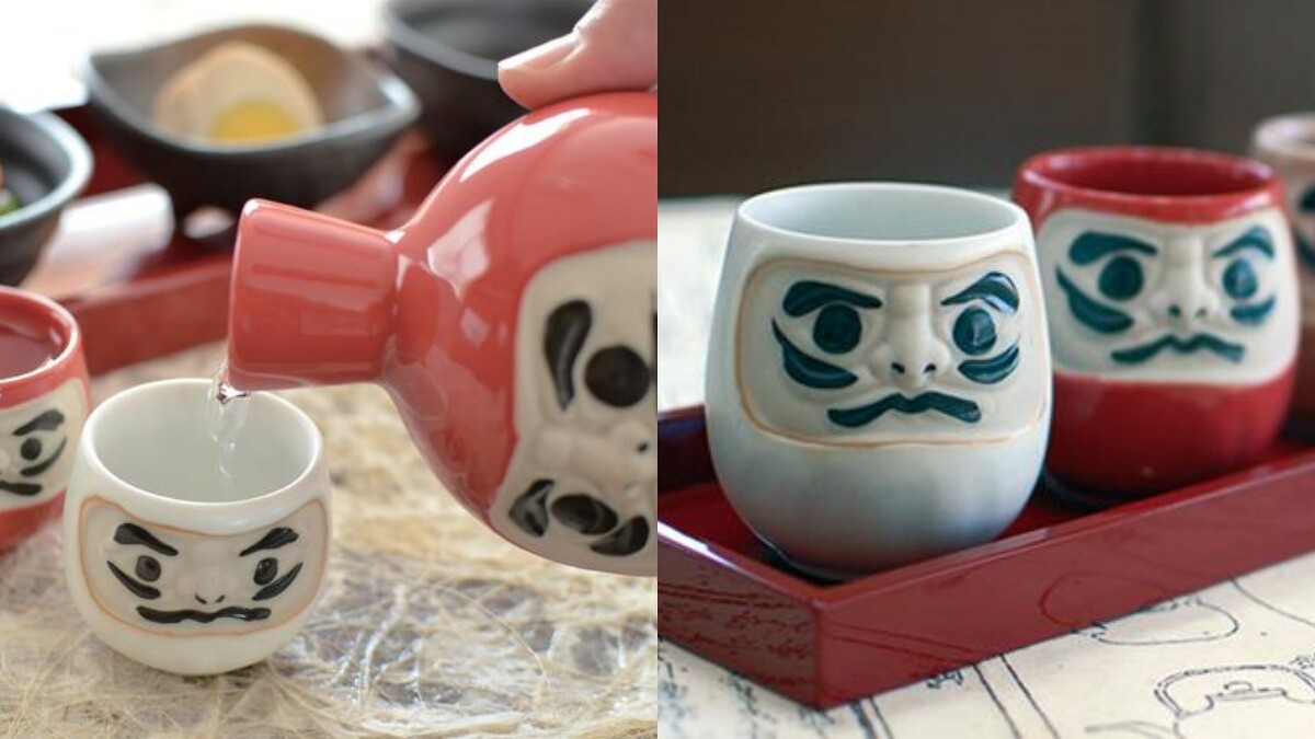日本製的風水達摩清酒杯壺組,最吸睛之處莫過於可愛生動的達摩表情與搶眼配色!酒杯還能作為酒壺蓋使用,收納時相疊在一起也超療癒。另外連顏色更暗藏玄機,紅色代表工作運、茶色是家庭運、白色則象徵招來健康運,實在太難抉擇!