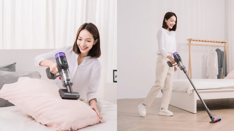 新款同樣具備多種吸頭配件,更能輕按、接上吸頭後快速轉換成手持吸塵器,重量則不到1公斤,減輕久握持的痠痛不適。從天花板高處、平面到地板等三種空間所需全能滿足。售價13900元,即日起正式上市。