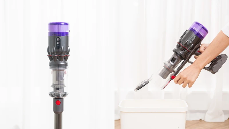 除此之外,上述兩款皆採用「按鍵式」開關設計取代傳統「按壓式」,再也不按到手指酸。集塵筒採免觸碰式設計,一鍵下壓便能彈出灰塵、碎屑。清潔部分也設想周到,吸頭刷毛、一體成形式的前後置濾網皆可下水清洗,助你輕鬆維持吸塵器乾淨。