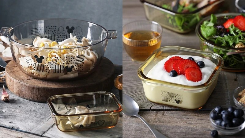 米奇幾何塗鴉綴於透明琥珀色玻璃盒身,盒蓋透度也提升,不論是烹調或是保鮮儲存都能一目瞭然,絕對是廚房必備首選!