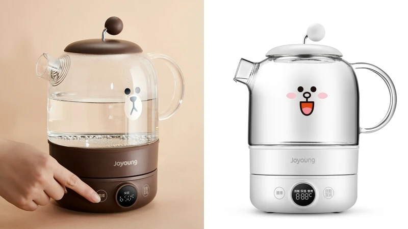 同樣是與LINE FRIENDS合作的快煮壺,耐冷熱溫差的高硼矽玻璃印上熊大、兔兔表情,讓廚房可愛度一秒飆升!能用來煮水、作為燉煮壺使用,可調整40~95度保溫。出水口更有可拆式濾網不怕喝到渣渣,也具備英國Strix精準控溫器能防止乾燒風險,或許能讓你愛上喝水。