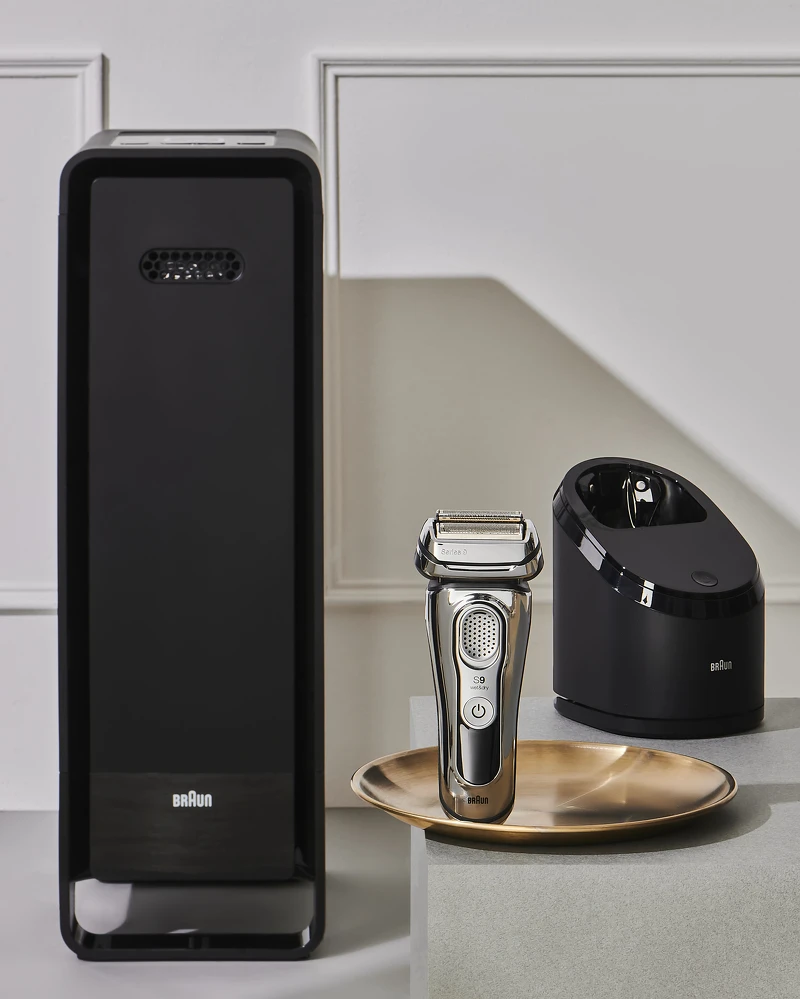 外觀美學上的品味就更不用說,黑、金、銀的經典高質感配色,電動刮鬍刀擁有皮革包裝套,加上黑系簡約的自動清潔設備,讓專屬男性的保養清潔用品瞬間格調升級,即使擺在居家空間中也超美!