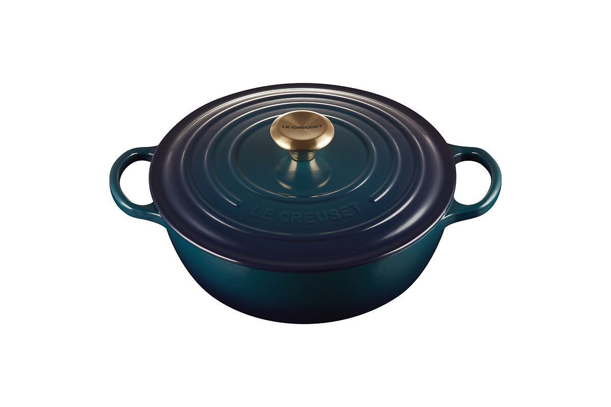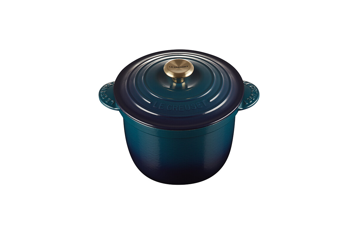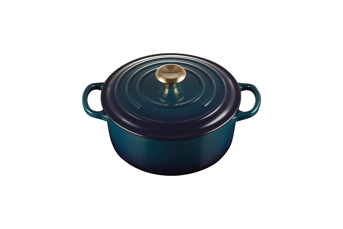 LE CREUSET這次選在2021萬聖節期間,打造限定新色「極光午夜藍系列」,靈感源自於美國墨西哥的原生多肉植物「龍舌蘭」,外觀帶著鬱鬱蔥蔥的綠色同時綻放醒目耀眼的藍色,加上淡金色的蓋頭點綴,讓整體優雅升級。