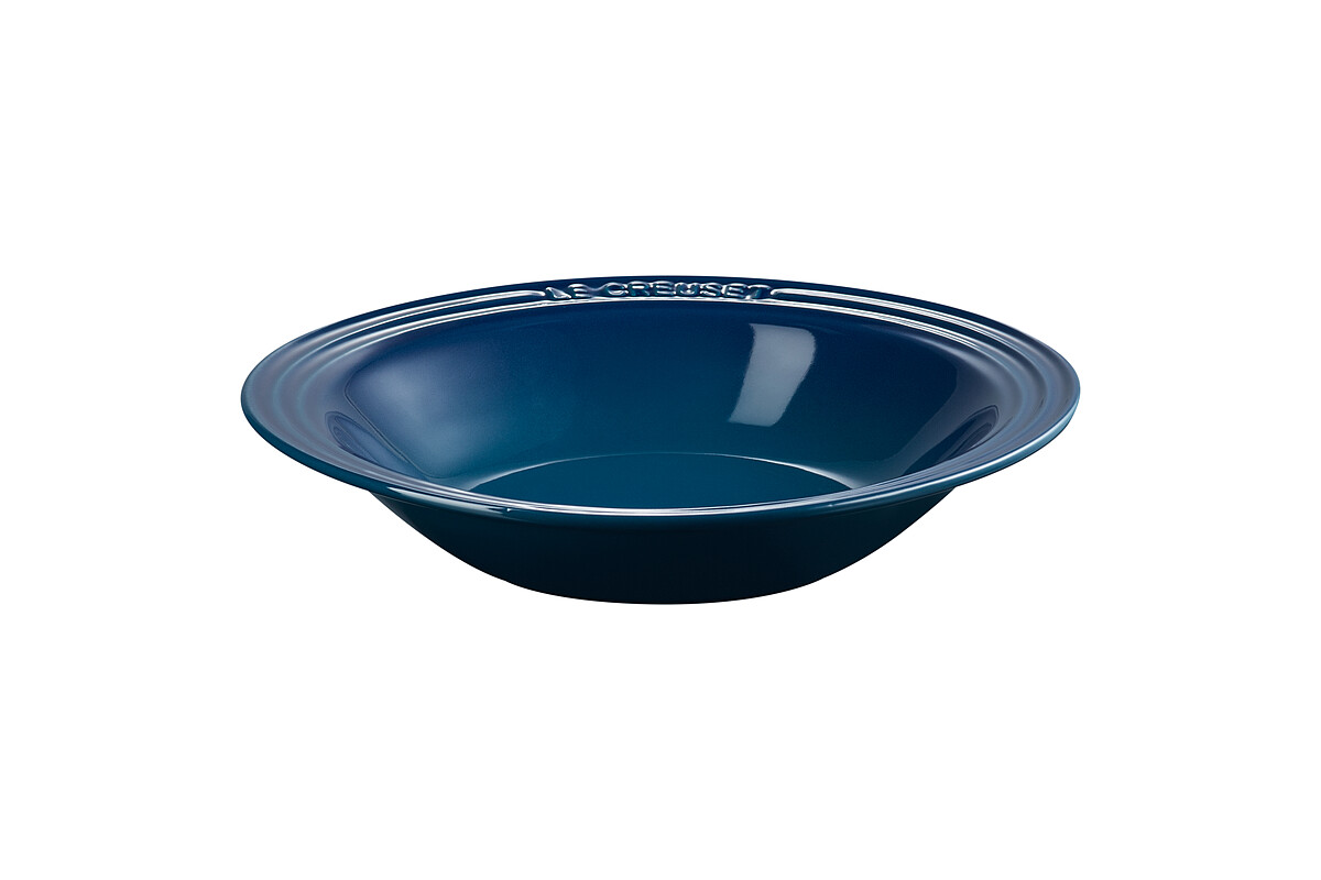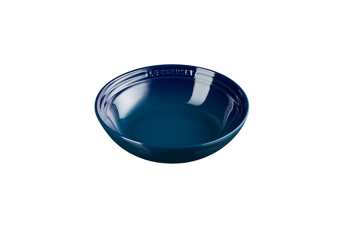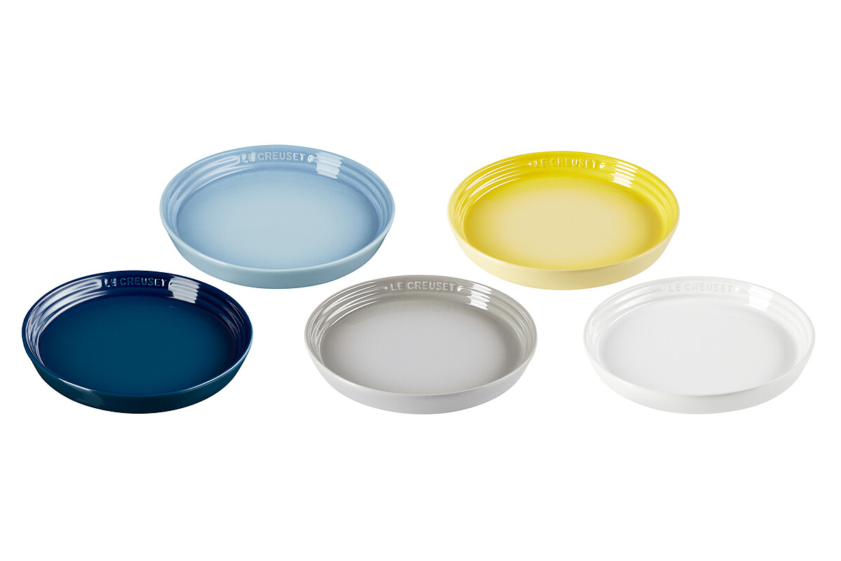 可以看到LE CREUSET「極光午夜藍系列」以綠色為主體色系,佐以藍色作為漸層,無論是鑄鐵鍋系列、瓷器盤、早餐穀片碗,甚至是馬克杯等,都換上了這個沉穩的神祕色調。
