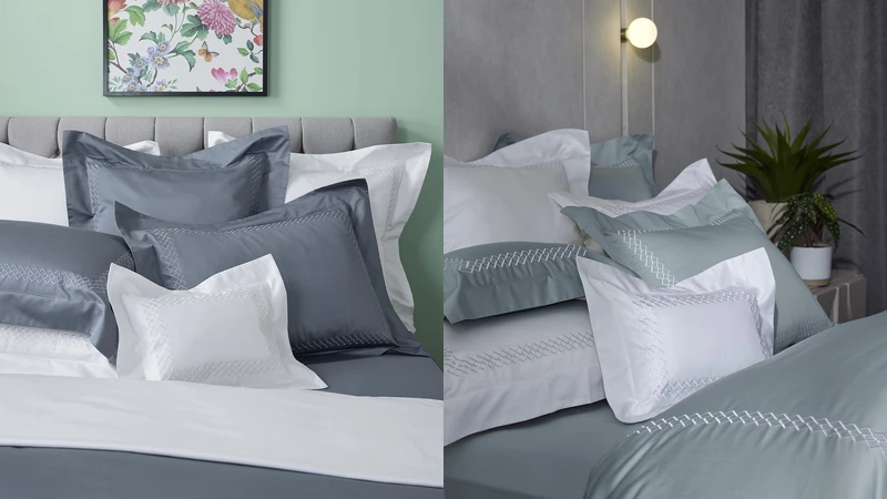從品牌經典的「浮雕玉石」邊框設計檔案中取得靈感,並用當代設計風格重新演繹,融合自然色調、英式建築幾何線條,讓清新用色寢具有了菱格紋交錯、刺繡設計,瞬間為空間增添雅致氣息。