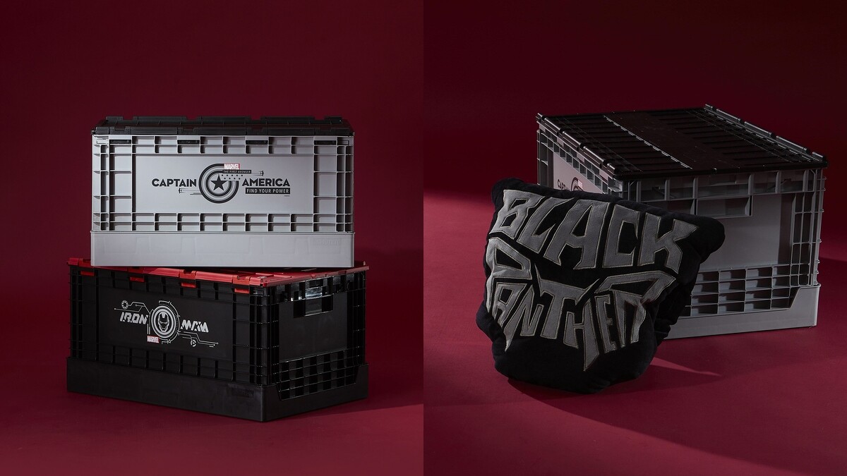物流箱-美國隊長/鋼鐵人1,299元、手插枕-黑豹899元