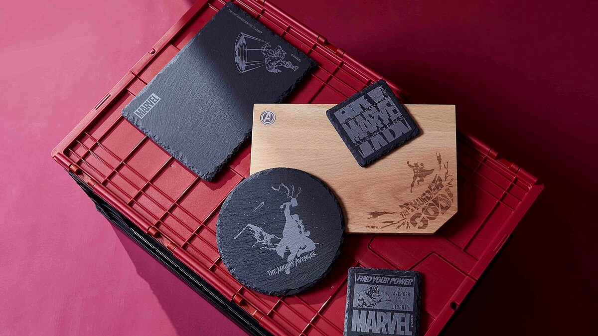 此次聯名全新品項有桌上型負離子空氣清淨機、車用造型風口香氛,餐具類的岩板材質點心盤、杯墊及鍋墊、木柄保溫壺,更是愛下廚好男人的絕佳選擇。心動的人可以把握11/11~11/14開賣前5天,全館消費滿1111元,便能以199元加購漫威金屬手機架擺飾,漫威超級英雄迷可別錯過。