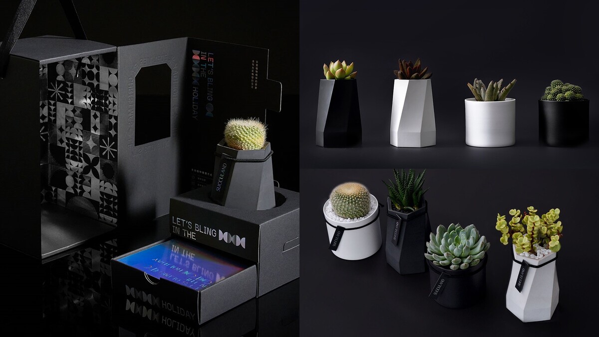 12/9即將迎來全新店裝的「有肉SUCCULAND」,即日起推出「2021繽粼聖誕禮盒」,要將送禮者的滿滿心意灌注在多肉植物裡。今年限定的「曜晶盆」,採用具有細緻柔滑觸感的清水模材質製成,擁有纖長旋轉幾何外型,沉夜黑、凝雪白兩色皆呈現出靜謐美感,能立刻提升居家質感。