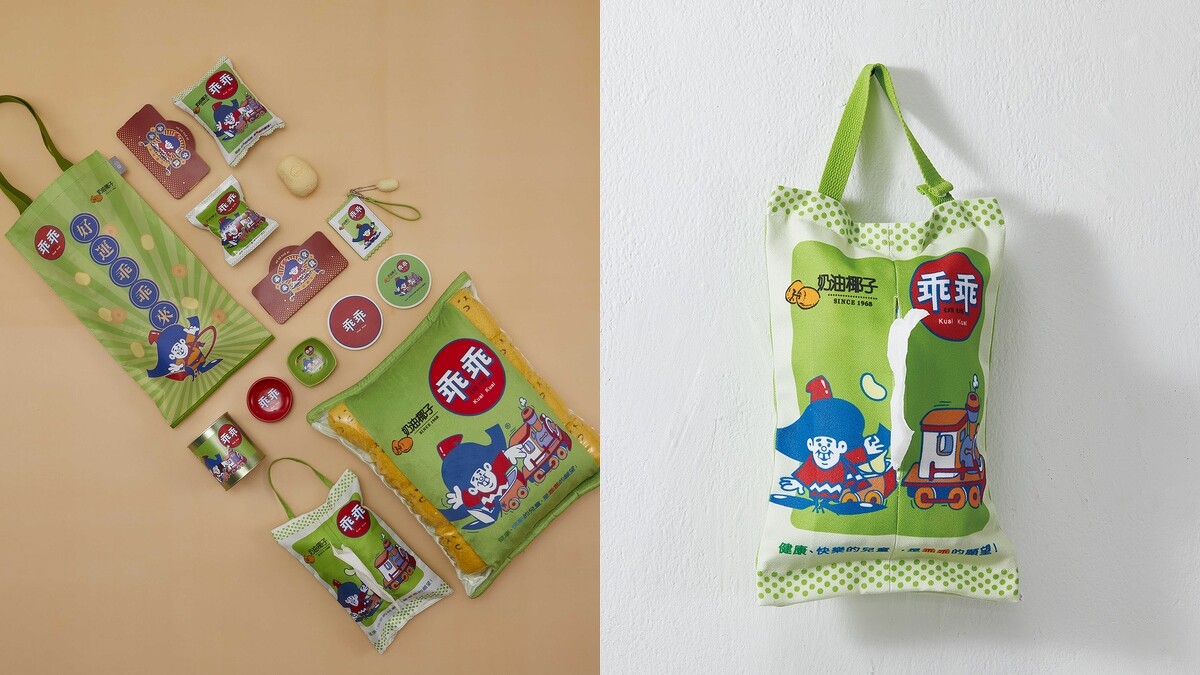 聯名一波波的HOLA,現在攜手古早味零食乖乖推出搶眼新作!10個品項皆以大家熟悉的「奶油椰子」口味包裝為主,製作成春聯帶、吊掛式面紙套、存錢筒、寵物玩具等等,更吸睛的還有「奶油椰子」脆果造型的香皂、能拿出一顆顆脆果的迷你造型抱枕,老靈魂的你可別買到錢包破洞!