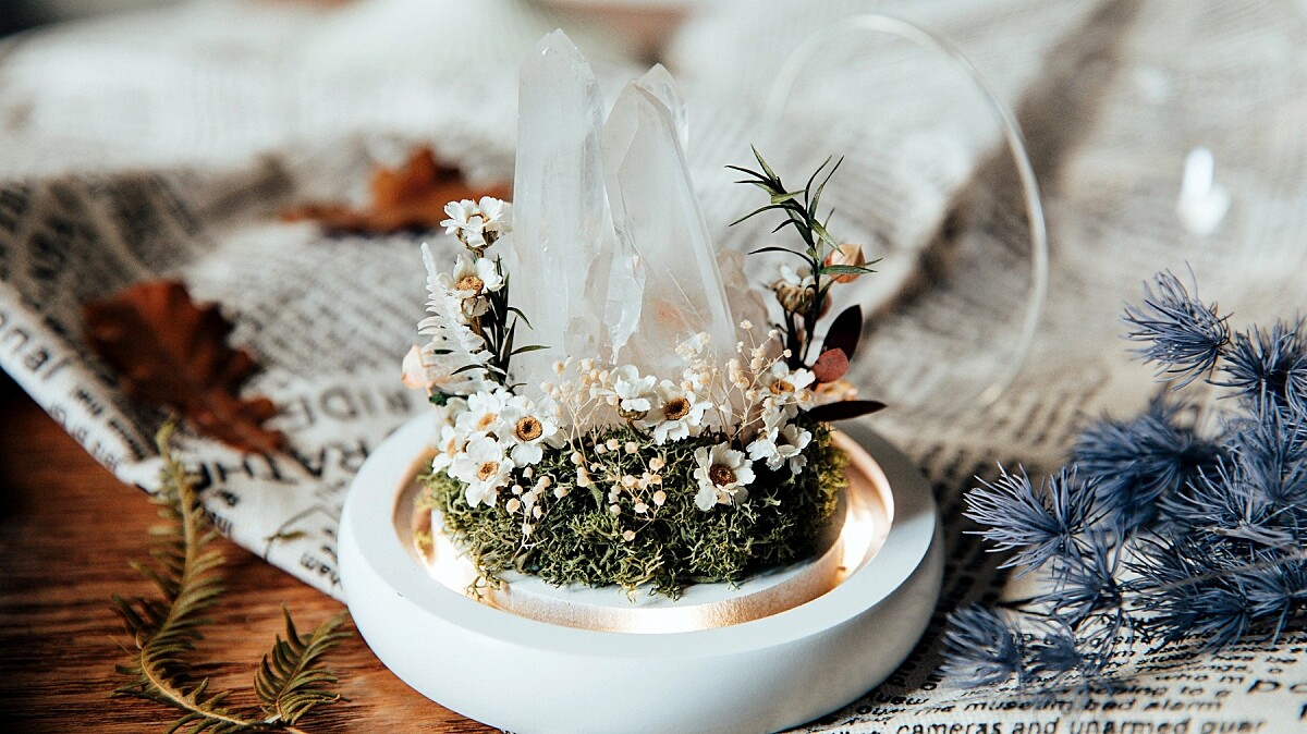 喜歡花草的人,勢必無法招架這款「天然白水晶玻璃盅」的魅力!以神秘森林作為靈感,將天然白水晶搭配手作乾燥花藝,從辦公桌、床頭、家中各處都適合擺放,也能立刻讓居家氛圍美出新高度。