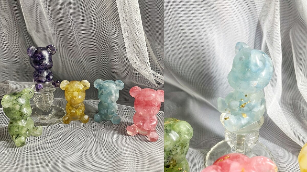 不想與大眾一樣擺放招財貓、貔貅,設計品牌Shin.Q崑式手作給你不同選擇!將天然能量水晶化作超Q小熊,有紫、黃、粉、海藍寶、綠碧榴等五種顏色款式,能照開運需求挑選。另外還可以再添加金箔,讓小熊更奢華細緻。