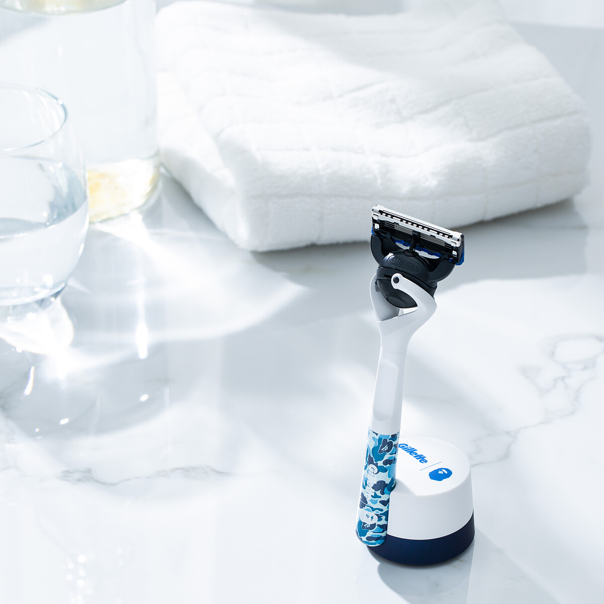 Gillette吉列刮鬍刀這次的聯名太強大!直接與街頭潮酷品牌一哥代表BAPE跨界聯名推出「Gillette x BAPE 限量禮盒套裝」,藍白色調與BAPE經典迷彩猿人的設計,從內容物到包裝外觀的每一處細節都使用BAPE猿人迷彩設計,精緻卻大膽的細節設計完整了聯名商品的完成度,絕對是讓另一半從顏值到品味秒升等的高能神級聯名好物!