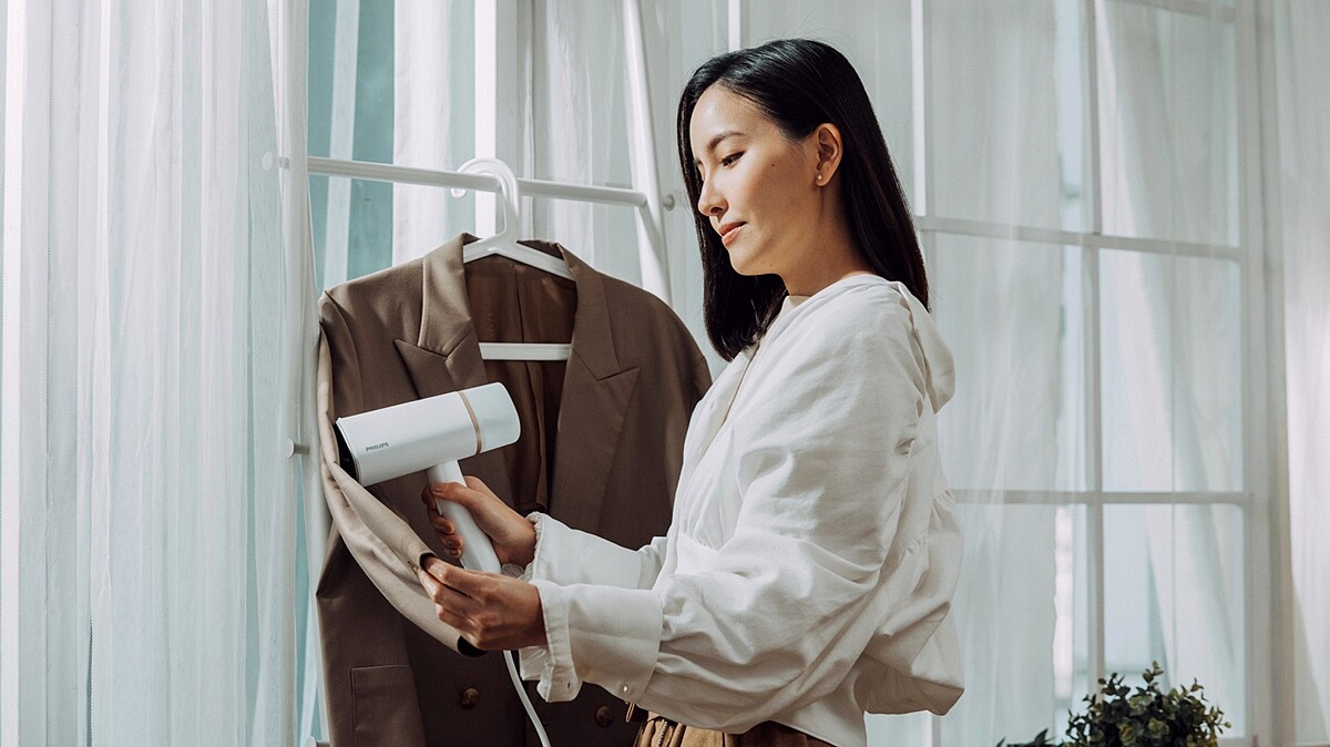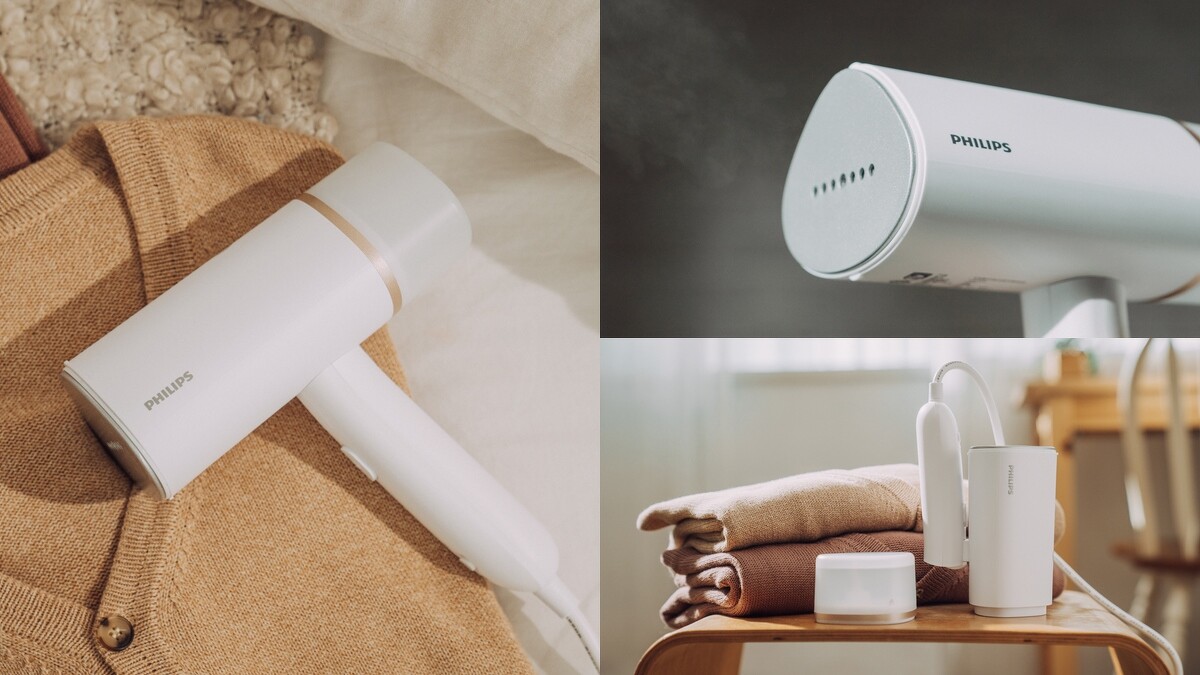 隨著時代更迭、需求轉換,全新的「飛利浦可摺疊輕巧掛燙機」正中現代人需求,整支重量約700克,能輕巧攜帶出門外,還有著方便操作功能,除了衣物外連沙發、窗簾、絨毛玩偶等都可以高溫蒸氣去除異味及殺菌。